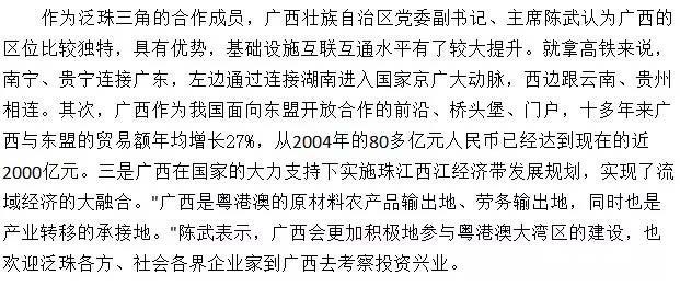 第三点,迟福林认为其中的关键举措在于粤港澳服务贸易一体化,也就是说广东在新的对外开放背景下能不能尽快地和香港、澳门在服务业市场开放上实现一体化,比如医疗、健康、教育、信息、物流等一体化体制政策的对接。与此同时才能发挥在基础设施已经达到比较完善的背景下,通过广东与香港、澳门的合作继续保持自己对外开放的优势。在他看来,海南打造以服务贸易为主导的自由贸易试验区从而走向自由贸易港成为泛珠合作的一个亮点,由此他提出海南可以和香港打造具有世界影响力的国际消费中心方面实质性地和香港合作。