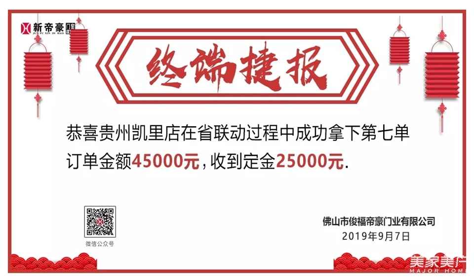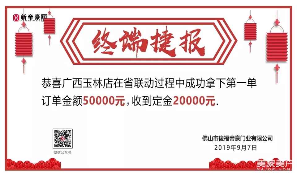 自开启“3.0时代全省联动”以来,通过新帝豪门窗总部的大力帮扶,新帝豪门窗终端专卖店的订单一直处于“不停歇”的状态,不断传来签单的喜讯,销量一路飙红。