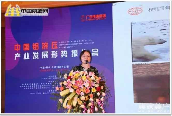 广东伟业集团董事总经理 李伟萍女士分享“铝挤压企业‘1+N’绿色铝材应用发展模式“主题报告: