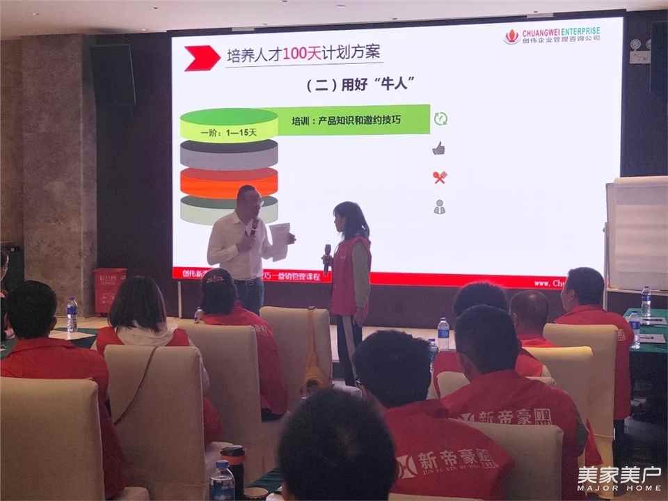 会议接近尾声,创伟企业管理新帝豪联动总策划,总教练周老师为大家讲到创伟对此次新帝豪省联动执行的重要性及意义,并总结活动中的收获,传达对此次全省联动的重视态度。同时希望通过创伟的授课训练对新帝豪门窗终端销售起到了极大的提升和促进作用,确保能够帮扶终端高效落地。