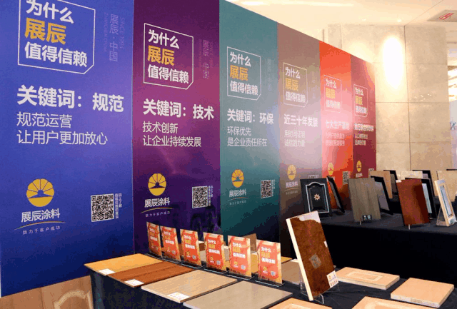 近几年来,在环保升级的大背景下,“油改水”环保涂装升级一直是木门企业关注的重点。展辰一直积极运用系统的环保涂装解决方案,助力江山门业快速健康发展。2017年,展辰便与江山门协结成战略合作关系;2018年,展辰集团培训讲师团队应邀来到欧派门业、舒福家门业、金旗门业等,为他们量身定制了培训服务;在今年3月在上海举行的2019第九届中国木门品牌大会上,江山欧派与展辰涂料举行战略合作仪式,双方就“水性漆+原木门”的技术组合继续研发出更多优秀的产品。此次大会现场,“为什么展辰值得信赖”的宣传海报引得众多参会嘉宾驻足观看,展辰从“技术、环保、规范、近三十年发展、七大生产基地、数万家合作伙伴”六个关键词全方位为客户作了具体诠释,而现场摆放的精致样板和优质的涂装解决方案,更是赢得不少门企代表的关注与认可。