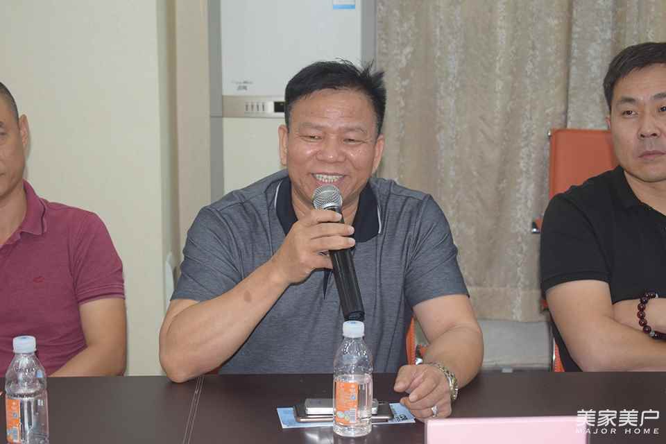 在参观完伟业工厂及产品展示厅后,开始了本次活动的研讨会。首先上台致辞的是伟业集团广东销售总经理麦宗炜,麦宗炜对广东省天花吊顶协会成员的到来表示热烈的欢迎,麦宗炜在致辞中提到,伟业集团是一家大型的成产铝型材的企业,其中也有生产天花吊顶的铝型材,示范案例有香港的新国际机场和大沥这边的全球铝业展贸中心,最后麦宗炜表示今天非常高兴伟业能够参加广东省天花吊顶协会的会议。