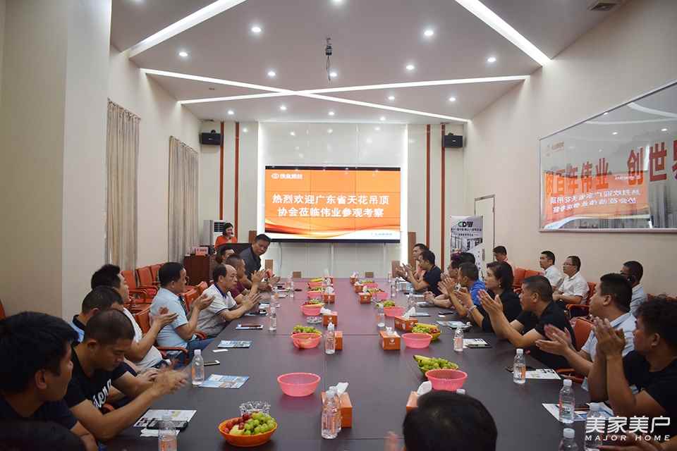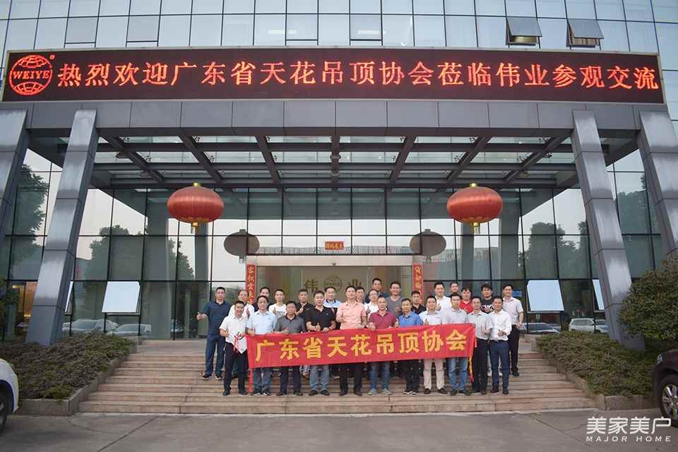 2019年10月16日,广东省天花吊顶协会在广东省门业协会的协助下组织协会成员来到广东佛山大沥参观伟业铝厂并在伟业总部大楼举行了一场研讨会。到场嘉宾有广东省天花吊顶协会会长周礼恩、中国建筑装饰装修材料协会门窗幕墙分会、天花吊顶分会秘书长兼广东省天花吊顶协会秘书长丁辉、广东省门业协会副秘书长饶德亮以及至高、柏尔斯、蓝姆特、帝森、欧斯宝、华狮龙、巴迪斯等企业代表。