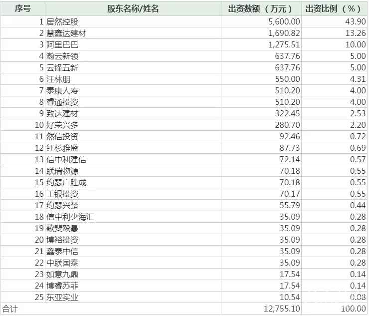 根据普华永道此前出具的《验资报告》,截至2018年6月13日,居然新零售的股权结构如下: