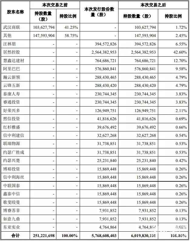 而根据武汉中商的公告,本次交易完成前及完成后公司的股本结构如下:
