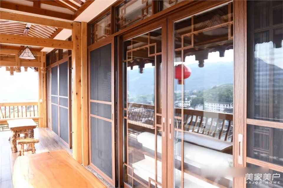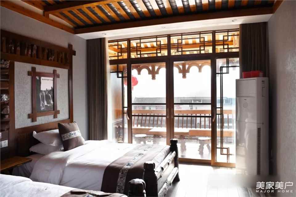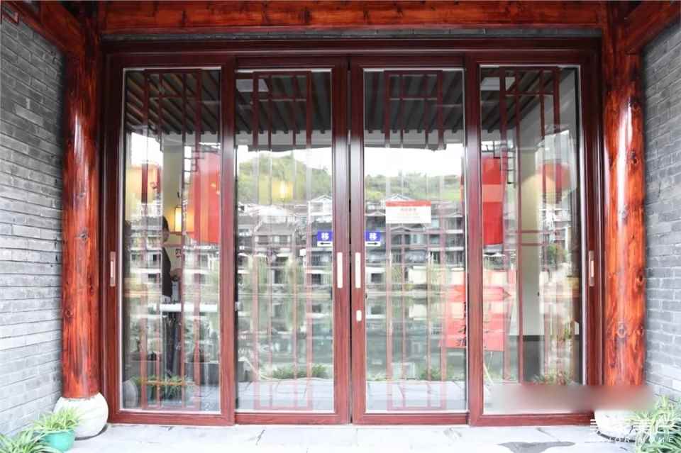 整栋民宿共设一个接待大厅和43间客房,客房与阳台之间隔断采用的新豪轩推拉门,价值大约45万元。