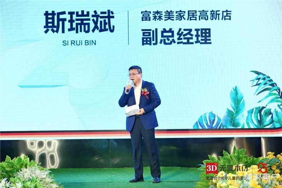 富森美家居高新店副总经理斯瑞斌对本次活动表示祝贺,并对3D无漆木门“敬畏生命 尊重健康”的品牌初心表示赞赏,希望未来3D无漆木门能为成都消费者提供更多环保健康的产品。