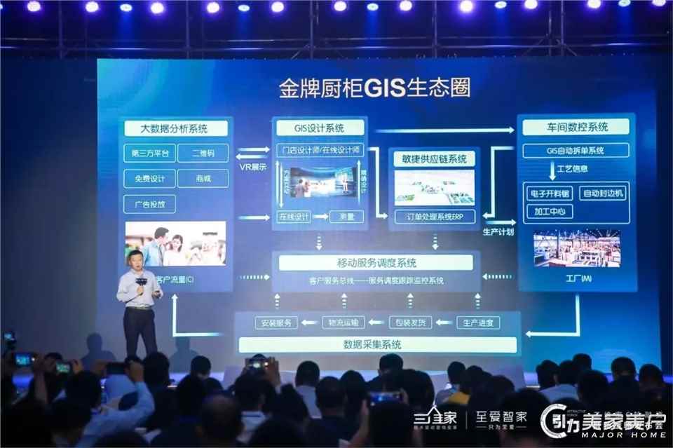 在标准化和工业化更为成熟的领域,金牌橱柜在迈向智能制造的路上不断尝试。而三维家在产业链的技术,也为家居产品升级创造了条件。发布会现场,金牌橱柜董事长温建怀也用亲身经历表示,“在和三维家合作最久的衣柜来看,衣柜下单比例已经达到97%,总设计时间降低50%以上,下单效率提高了两三倍,真正地实现了效率的提升、成本的下降和人员的减少。当然,通过与三维家合作,我们实现了前后端一体化的打通,也实现了客户服务全链条的数字化。”