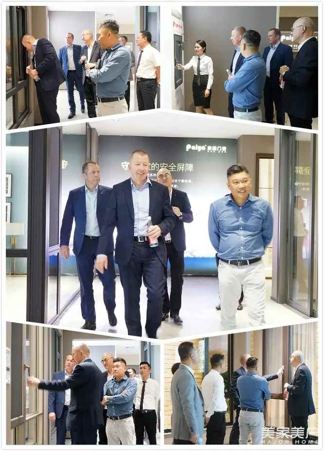 派雅门窗李董、易总与陈总陪同德国丝吉利娅集团总裁、亚太销售总监及中国区总经理考察派雅300000㎡的现代化生产基地及全新一代4.0展厅,在参观派雅全新一代4.0展厅时,丝吉利娅集团领导为如此高端、新颖、时尚的展厅效果而震撼,面对琳琅满目的产品,不时地驻足询问、倾听、观摩,对派雅铝门窗、生态门等产品的创新研发给予了高度的评价及赞美。