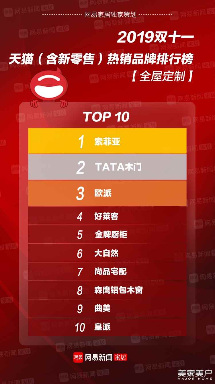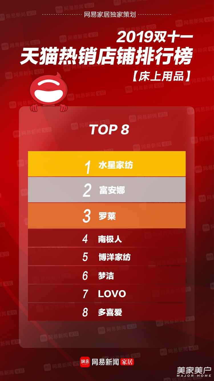 网易家居最新整理出“住宅家具”(天猫)、“全屋定制”(天猫,含新零售)、“家装主材”(天猫,含新零售)、“床上用品”(天猫)四大类目表现优秀的热销品牌榜单——