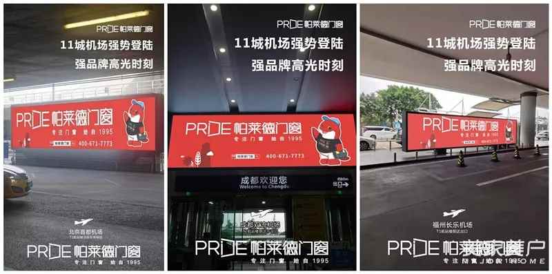 2019年末,帕莱德门窗全新出发,推广战略全新升级,强势抢滩,全新形象陆续亮相于上海虹桥机场、北京首都机场、武汉天河机场、深圳宝安机场、成都双流机场、沈阳仙桃机场、西安咸阳机场、厦门高崎机场、青岛流亭机场、海口美兰机场、福州长乐机场、全国11地,11大机场,陪你美好出行,安全到家,看尽不一样的风景。
