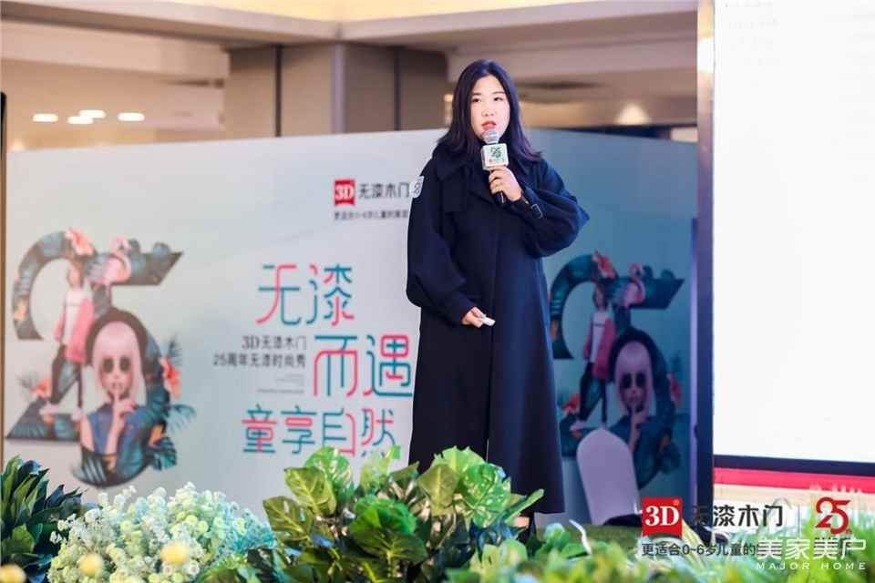作为本次活动的主办方,3D家居集团品牌总监贾唯甄表达了本次活动的初衷,健康一直是3D无漆木门的追求,因为健康是一个人、一个家庭乃至一个国家的基础,特别是对于免疫力弱的儿童,3D无漆木门尤其关注。未来,3D无漆木门会坚守造健康木门做良心企业的初心,不断提升无漆技术,创造健康安全的家庭环境,为儿童的健康成长保驾护航,把健康带给更多的家庭。