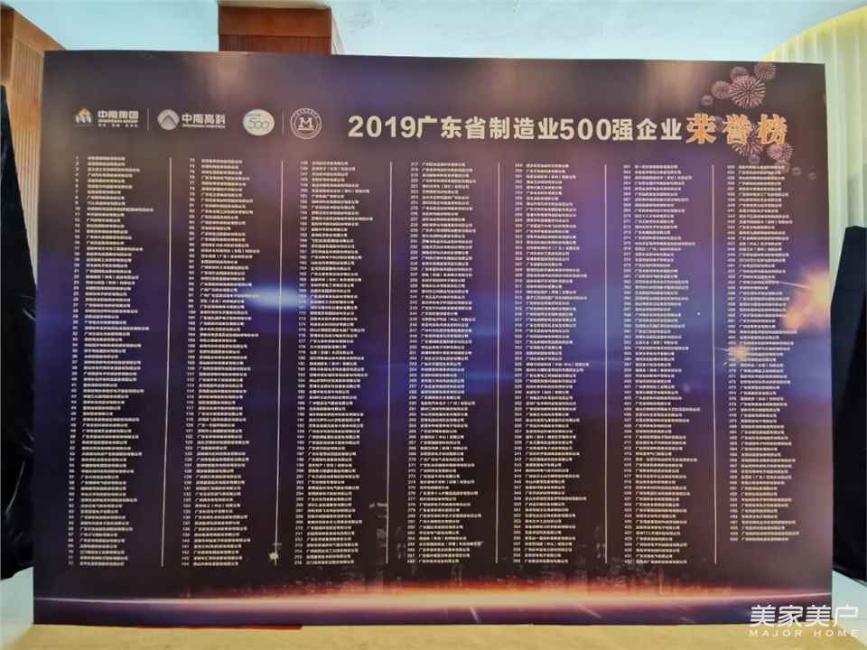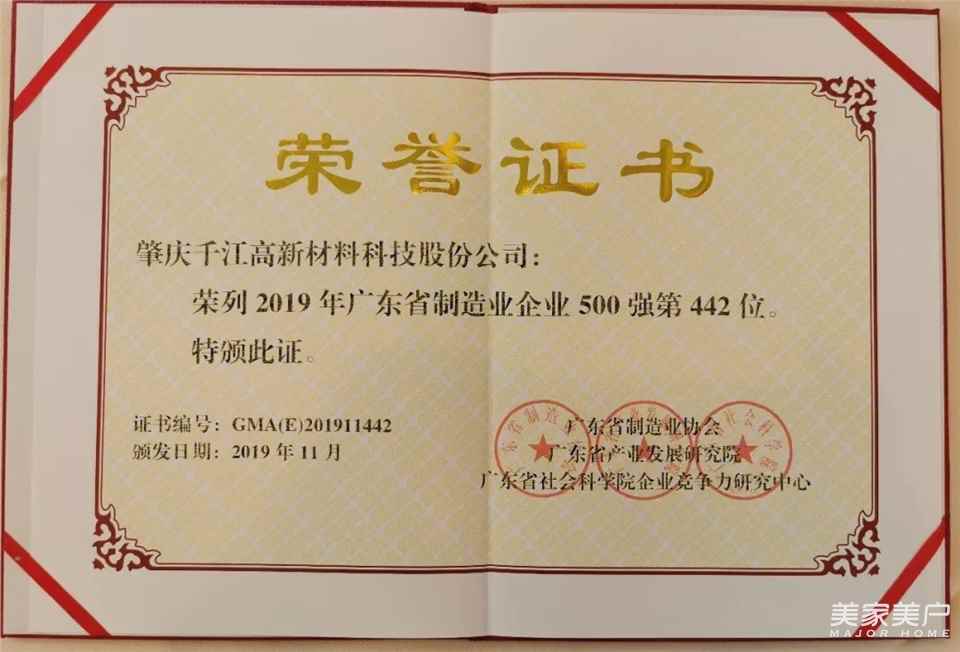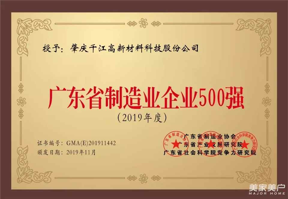 千江高新荣列“2019年广东省制造业企业500强”榜单
