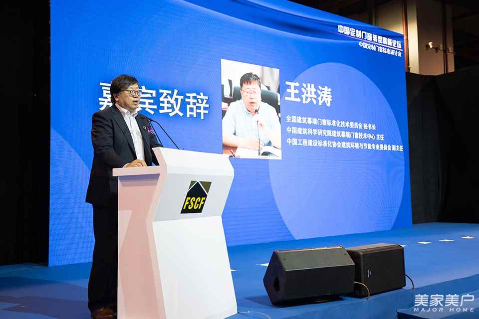 会上,全国建筑幕墙门窗标准化技术委员会秘书长、中国建筑科学研究院建筑幕墙门窗技术中心主任、中国工程建设标准化协会建筑环境与节能专业委员会副主任王洪涛首先上台致辞。他说:“工程化的门窗标准与工程施工的监管都十分完善,但定制门窗或者说家装门窗的标准仍缺失。今天启动的《定制门窗工程技术规程》标准是定制门窗行业首次立项的标准,将改变定制门窗行业之前竞争无序、没有标准可依的现状,对提升与规范门窗企业的产品质量与生产标准起到重要的推动作用。定制门窗对产品质量的要求比工程门窗对产品的要求更高,希望定制门窗生产企业能够做出更好的产品,有更大的发展空间,为门窗行业的发展提供动力,推动门窗行业健康发展。”