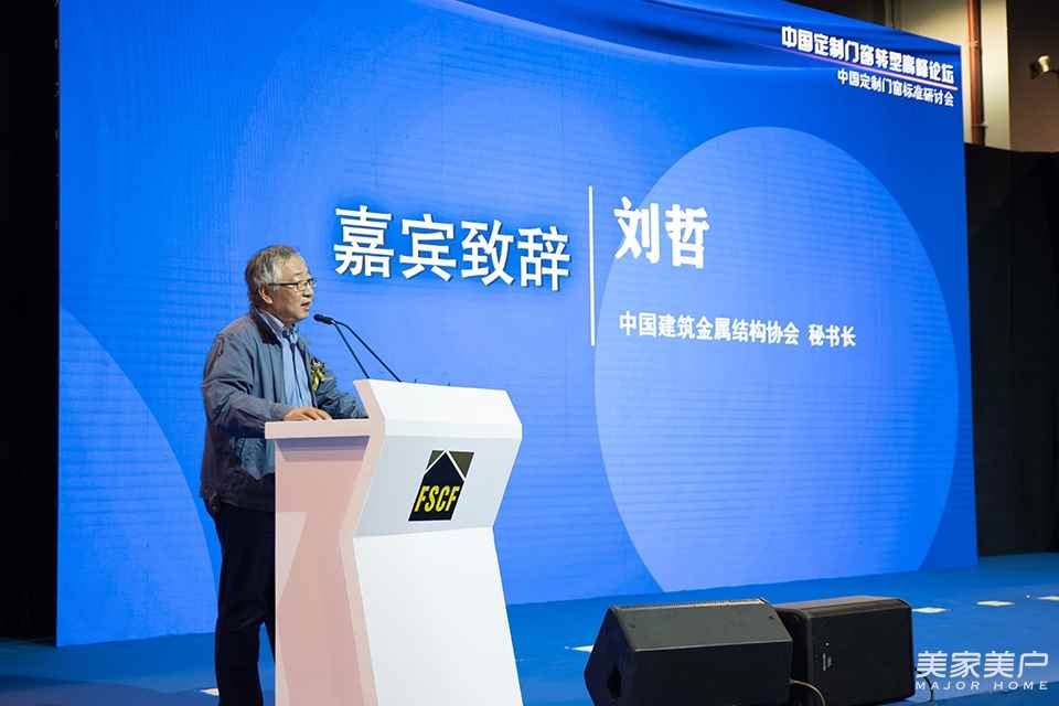 中国建筑金属结构协会秘书长刘哲上台致辞。他表示,现在国务院要求各行各业提升产品质量,而当今定制门窗行业的发展实际上是对国家质量提升战略的关键落实。他认为,根据目前的中国国情和市场情况,定制门窗行业的前景和市场是非常广阔的。”