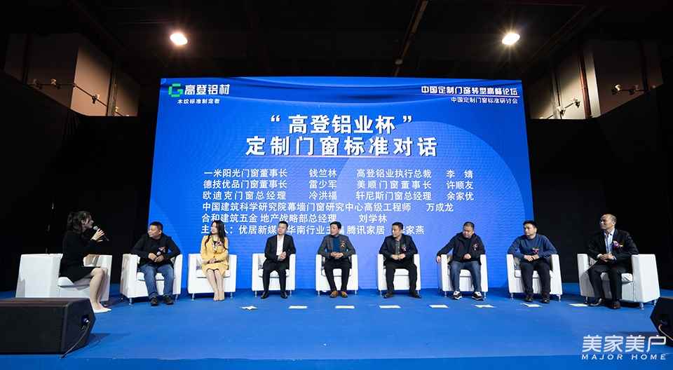 在本次大会的“高登铝材杯”定制门窗标准对话环节,优居新媒体华南行业主编、腾讯家居李家燕上台主持了本次对话环节。一米阳光董事长钱竺林、高登铝业执行总裁李婧、德技优品门窗董事长雷少军、美顺门窗董事长许顺友、合和建筑五金地产战略部总经理刘学林、欧迪克门窗总经理冷洪福、中国建筑科学院幕墙门窗研究中心高级工程师万成龙、轩尼斯门窗总经理余家优就定制门窗行业经营现状、企业遇到的发展瓶颈、定制门窗标准的出台对企业的利好等方面进行了深入探讨与交流。