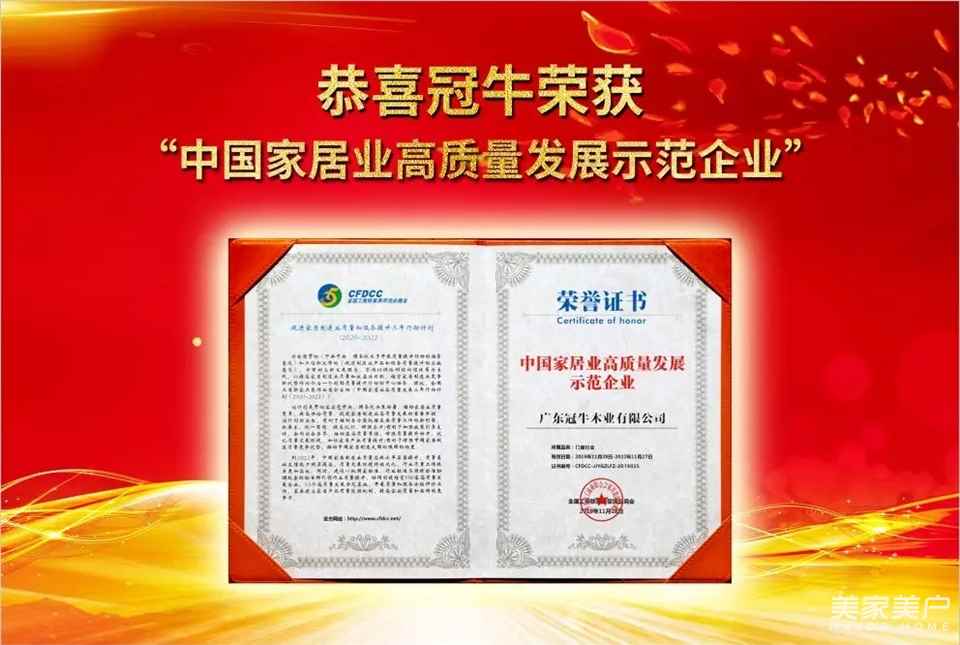 热烈祝贺冠牛荣获“中国家居高质量发展示范企业”殊荣