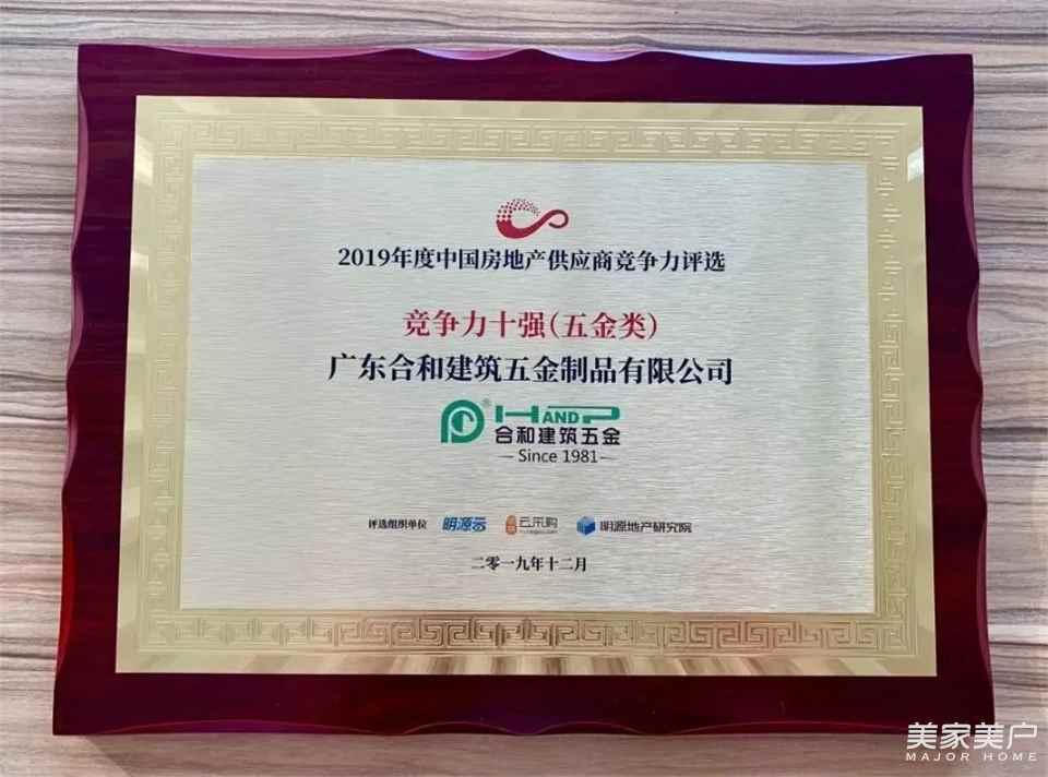 本次评选历时两个月,经过开发商推荐、网络投票、云采购大数据筛选、开发商专家评审四大环节,合和建筑五金能够荣登竞争力十强之位,是行业内对合和品牌实力的认可和肯定。