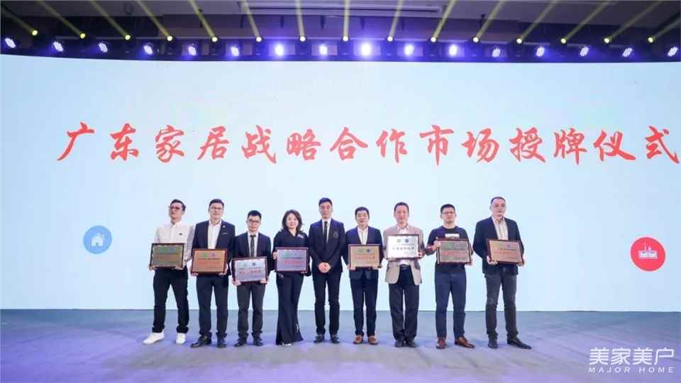 广东省家居战略合作市场授牌仪式,广东省家具商会会长周子鹏先生为合作企业授牌。