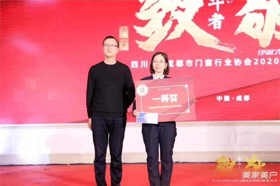 四川省门窗行业协会会长单位、四川兴事发集团总经理勾爱民(左)为凯达名门颁发一等奖。