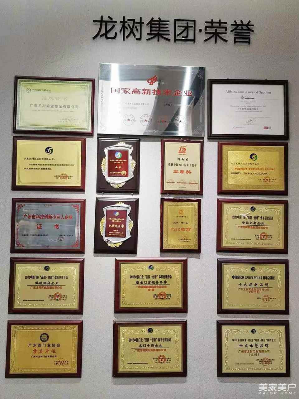 龙树自2002年成立以来,龙树人高度团结、扎实工作,一步一个脚印,在全体龙树人的共同努力及社会各界的关心和帮助下,龙树先后获得了全国工商联门业专委会会长单位、国家高新技术企业、广州市科技创新小巨人、中国门业十大品牌等诸多殊荣,并牵头门业企业制定了建筑用钢木室内门、建筑用生态室内门的行业标准。一项项荣誉的获得,激励着全体龙树人更加铿锵的前进!