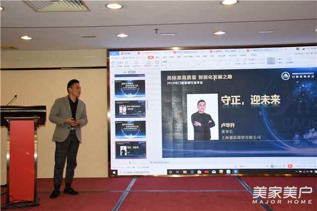 在发言中,丁辉表示2019年门业市场容量缩减,品牌集中度提高,市场竞争态势激烈,渠道销售模式线下线上双头并进,消费者市场更趋向年轻化、定制化和智能化发展,门业市场需求总量基本持平。行业发展趋势为:一,企业品牌建设进一步强化;二,精装房时代来临,建材行业潜力巨大;三,创新设计引领支撑行业转型升级;四,环保政策愈加严格,绿色节能环保成建材业未来发展趋势;五,从个性化定制到智能化生活,人工智能赋能家居进化;六,国家乡村战略实施为建材行业发展注入新动力;七,抓住“一带一路”机遇,“走出去”需秉持可持续发展理念。