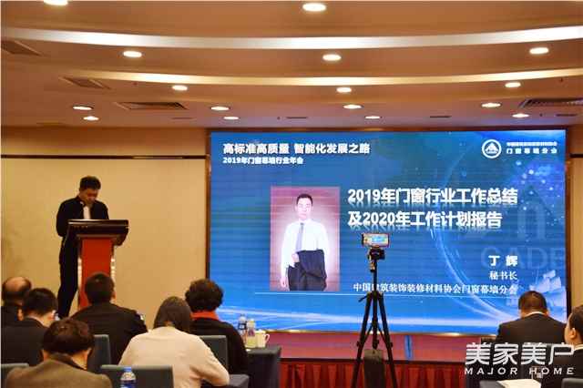 中国建筑装饰装修材料协会门窗幕墙分会秘书长丁辉对2019门业发展概要进行了讲解,作2019年门窗行业工作总结及2020年工作计划。