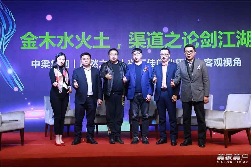 (由左到右)网易家居罗会俊、中梁集团发展部总监王语堂、居然之家王威龙、北京客观视角白晓东、兴万佳门业集团周建林、中建集团海外发展委主任李生