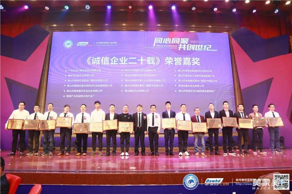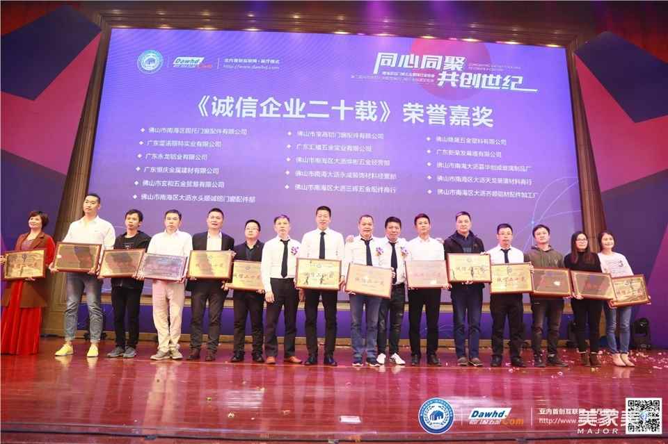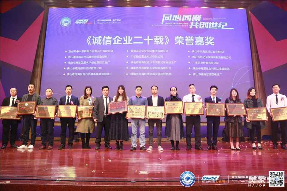 会议中,南海区铝门窗五金装饰行业协会对“诚信企业二十载”的入选企业进行了颁奖,共计62家企业荣获了此殊荣。会上还相继颁发了《铝门窗五金标准》参编单位、第二届铝门窗五金设计大赛颁奖、校企合作、战略合作伙伴授牌仪式、“宝高五金杯”足球比赛特别奖等奖项。