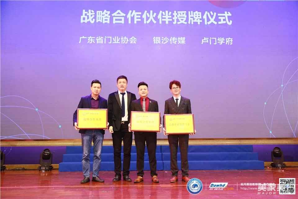 战略合作伙伴授牌仪式,与广东省门业协会、银沙传媒、卢门学府3家单位达成战略合作伙伴关系。