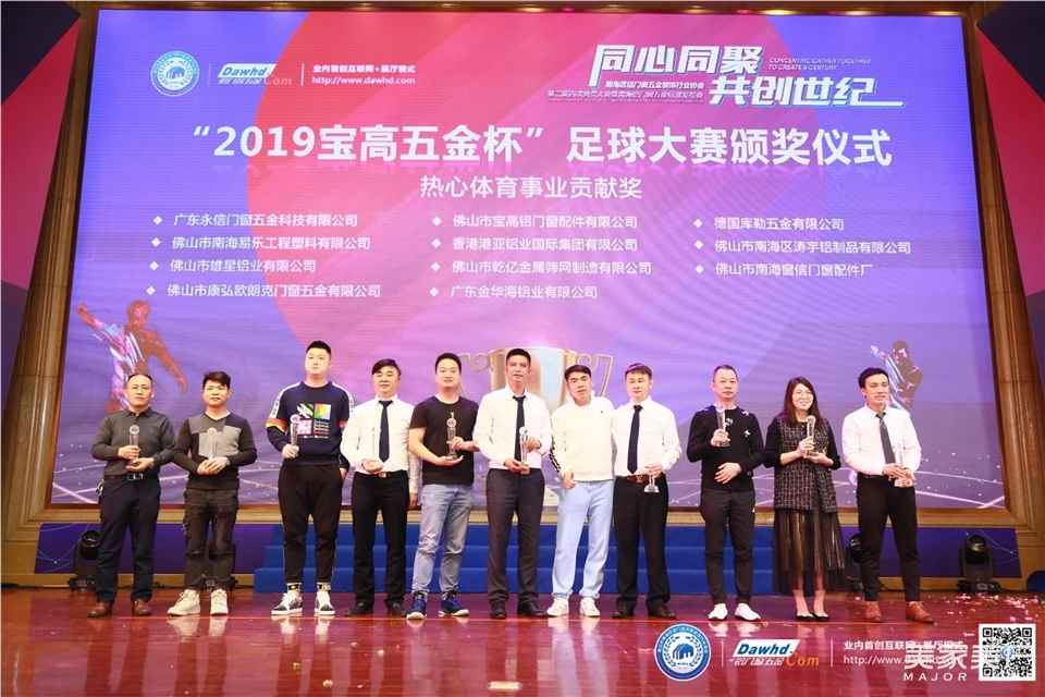 “南海铝门窗五金协会2019宝高五金杯”足球大赛颁奖仪式,颁发了热心体育事业贡献奖和“宝高五金杯”足球比赛特别奖项。