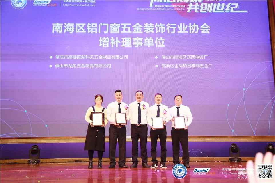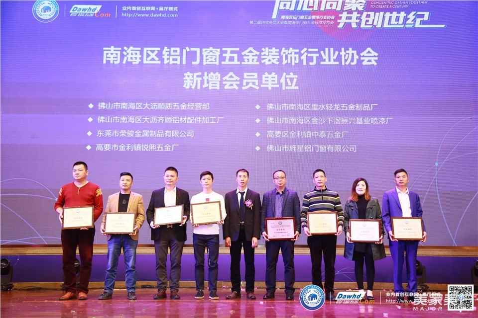 2019年12月23日晚,佛山南海区铝门窗五金装饰行业协会在佛山南海名都雍景湾大酒店举办了主题为“同心同聚·共创世纪”的第二届四次会员大会暨南海铝门窗五金标准发布会。