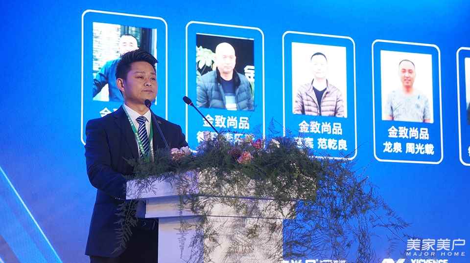 四川金致尚品门窗有限公司总经理范泽银发言。发言中,范泽银对金致尚品门窗2019年工作作了总结。2019年,金致尚品门窗公司荣获多项大奖和殊荣,其中包括中国门窗品牌50强、中国门窗匠心品牌30强、中国最具投资价值奖、四川省省门窗协会副会长单位、建材家居行业渠道影响力领军品牌等。同时,公司与多家权威机构和知名品牌达成合作,大西南地区新增建立标准专卖店54家,其中入驻红星美凯龙11个,入驻居然之家23个、入驻其他品牌商场20余家。范泽银说:“2015年,金致尚品门窗怀着对行业的憧憬,对事业的热忱,进入了快速发展的门窗行业。五年来,伴随着风雨一路拼搏前行,身后的深刻足迹印证了企业发展的光辉历程。”多年来,金致尚品门窗一直潜心研究门窗行业运营模式,整合人力密集和信息密集两个要素。做到人员的高效利用和信息的高度共享,从而为客户提供更优质的服务,得到客户的高度信任。2019年,金致尚品门窗达成年销售破亿的的销量壮举,完成了公司三五战略规划第一步。接下来,公司的标准化车间将达到4万平米,努力实现五年销售额目标突破4亿元的战略发展。