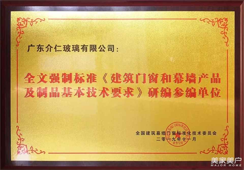 介仁艺术门窗获《2019年度广东省门业协会领军企业》称号
