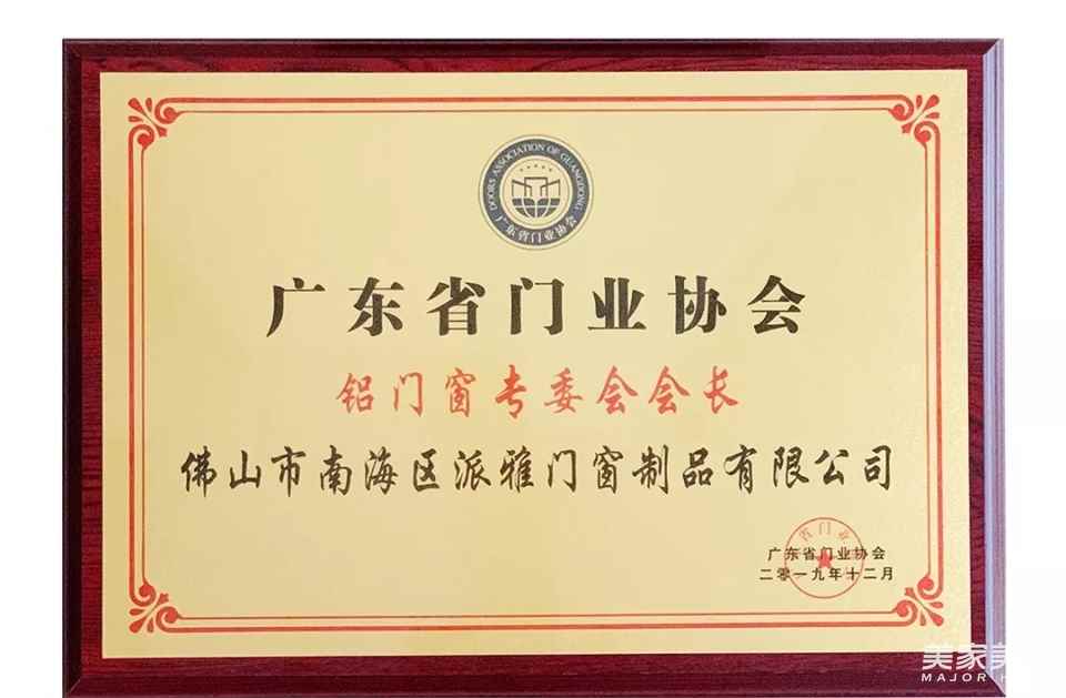 屡获殊荣 | 派雅门窗荣膺“广东省门业协会铝门窗专委会会长”和“领军企业”两项殊荣