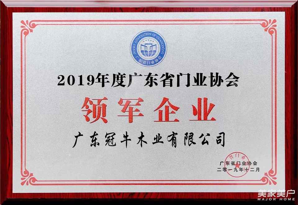 12月30日,由广东省门业协会主办的“广东定制门窗高峰论坛暨广东省门业协会年会”大会上,凭借多年在实木定制领域的深耕细作冠牛木门·整体家居荣获了“2019年度广东省门业协会领军企业奖”。