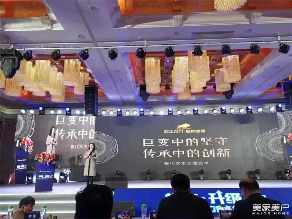 在行业大咖的主题演讲环节,冠牛副总裁庞晓良女士发表了主题为”巨变中的坚守,传承中的创新“主题演讲。庞总分享了冠牛作为高端实木定制的代表性企业,历经22年不懈耕耘,一直坚守在实木领域,而创新是冠牛自成立以来一直秉承的企业发展战略,坚守与创新是冠牛企业发展的关键。