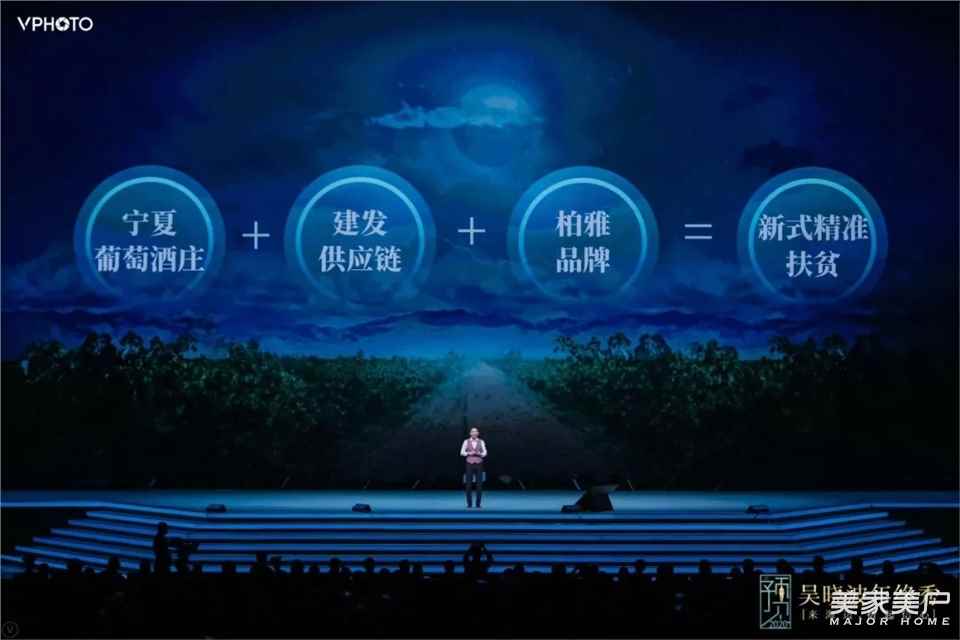 在中国的宁夏,贺兰山东麓,有一百多个葡萄酒酒庄。过去三年里,中国的葡萄酒在全球葡萄酒评选中屡屡获奖,很多获奖的品牌都来自贺兰山东麓的葡萄酒酒庄。那边的闽宁镇是一个非常重要的扶贫移民区,能产出最好的有机葡萄酒,但是那里的人没有好的卖酒渠道和能力。于是就出现了供应链来驱动——建发通过它的分发供应链,做了一个品牌,叫做柏雅,跟宁夏的葡萄酒酒庄合作,分发到全世界,完成了新式的产业扶贫。