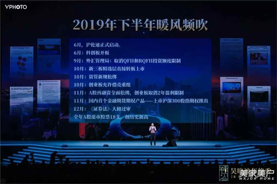2019年下半年,特别是6月份之后,我们看到了一系列的新闻:沪伦通正式启动、科创板开板、外汇管理局取消QFII和RQFII的投资额度限制,看到了新三板精选层直接转板上市政策的发布,资管新规的松绑,创业板允许借壳重组, A股再融资的全面松绑,创业板再融资取消连续两年盈利限制,看到了国内第一个股指期权产品——沪深300股指期权推出。