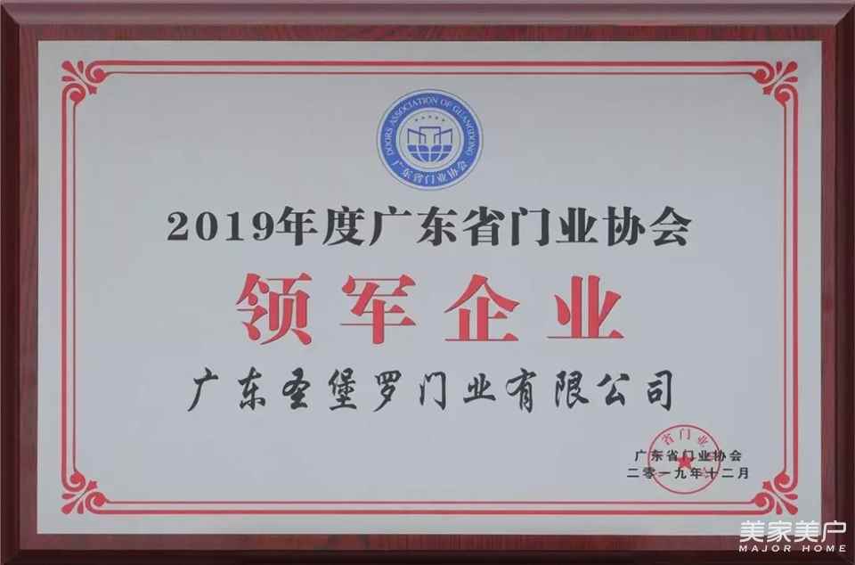 热烈祝贺圣堡罗整体门窗荣膺“2019年度广东省门业协会领军企业”