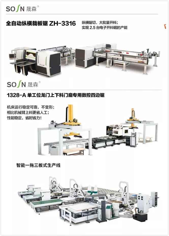 当前,青岛晟森已经熟练掌握各种智能生产线技术,智能一拖三板式生产线、智能自动化纵横电子开料锯、门厂智能自动化四边锯生产线等智能代表产品是行业速度最快、效率最高的产品,代表了木工机械行业最顶尖水平,真正成为中国制造代言人。