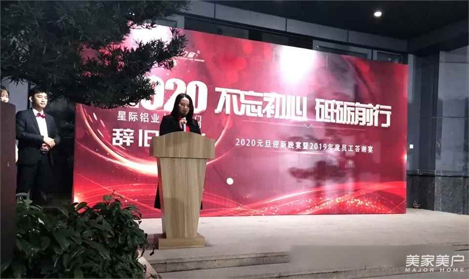 星派门窗财务总监李晓君女士发表致辞,肯定了星派人们的过去一年的成绩,感谢一年来全体员工的辛苦付出,并对大家送去新年的美好祝愿。新的一年,星派门窗将坚定发展的信心,以消费需求为导向,以加强服务为抓手,开创2020年发展的新局面,将带领大家去迎接新的机遇,新的挑战,新的任务。一起把星派门窗做的更强,更大。