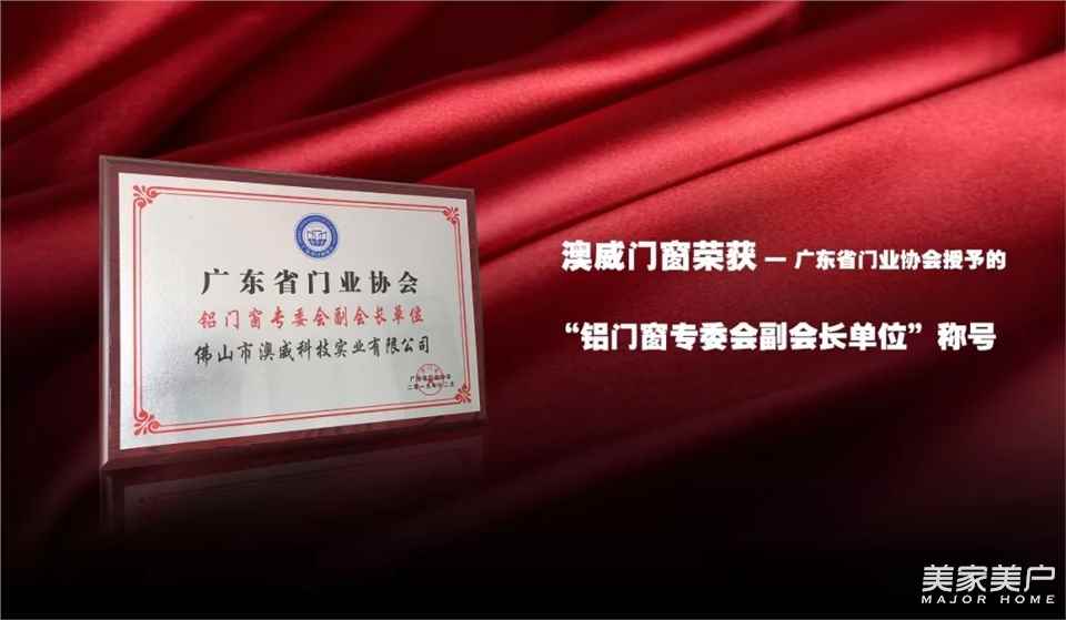 澳威门窗稳步发展一步一个脚印,重资引进国内外先进设备,坚持执行“高标准,严要求”的理念,获行业认可,再添荣耀,荣获广东省门业协会授予的“铝门窗专委会副会长单位”称号。