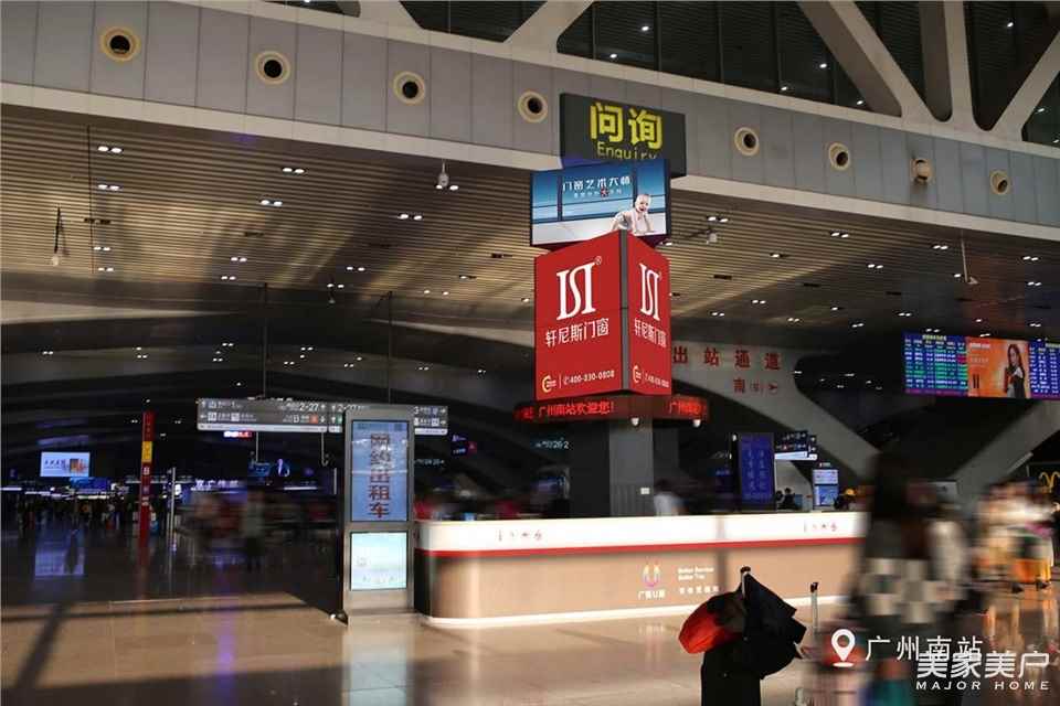 轩尼斯门窗的广告位于广州南站出发层、到达层进出站通道两侧和候车大厅,为进出站必经之路,每天客流量约70万人次,冲击力强,可以彰显品牌实力与形象。