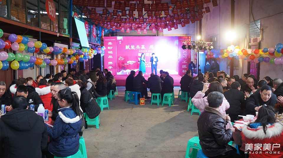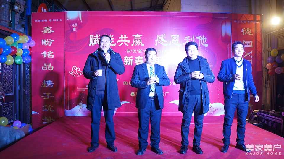 1月14日,鑫盼盼门业2019年新春团拜会盛大举行。鑫盼盼门业董事局主席周洪贵、总经理蔡有权、总务主管叶利红、生产厂长吴红贵、采购总监谭志华、营销主管杨海艳、财务总监张君、技质部长黄德厚等以及公司员工、员工家属等200余人参加了活动。