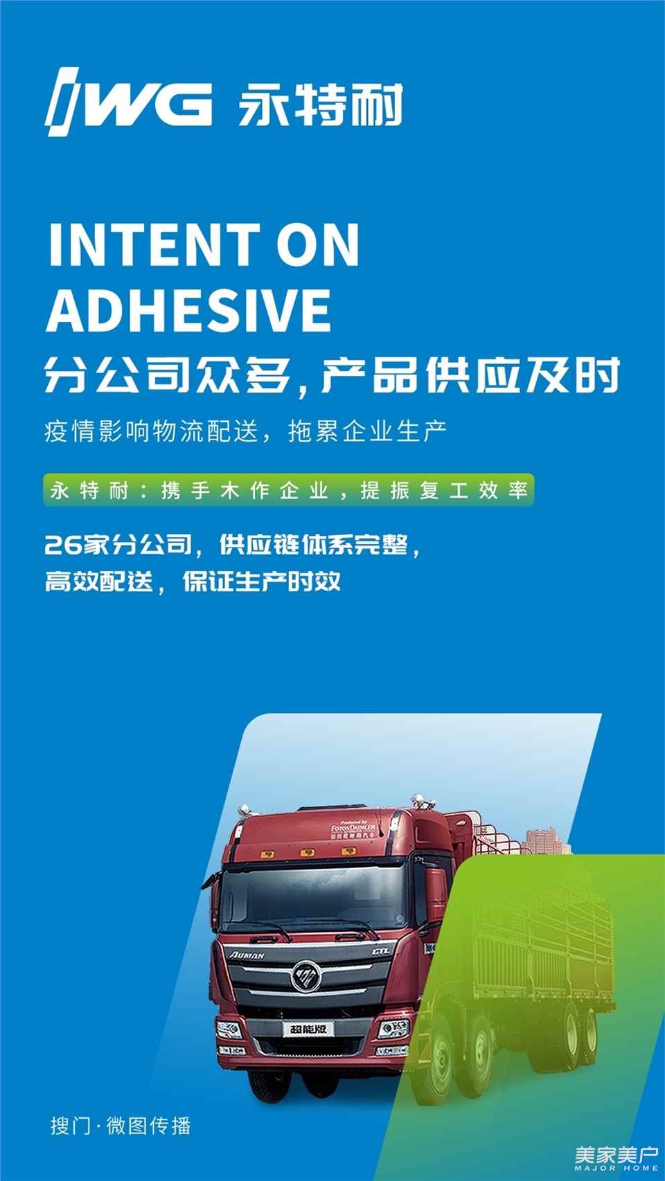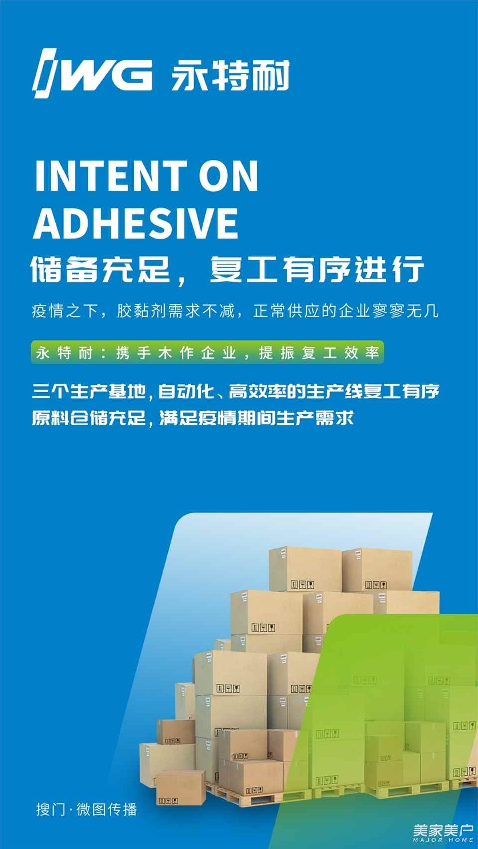 疫情严重,企业产能受到巨大影响。永特耐通过独有的供应链体系,产品在分公司均有仓储,依照国家指示有序复工,有效满足家居企业节后的胶黏剂需求,与企业并肩走出疫情之下的生产困境。