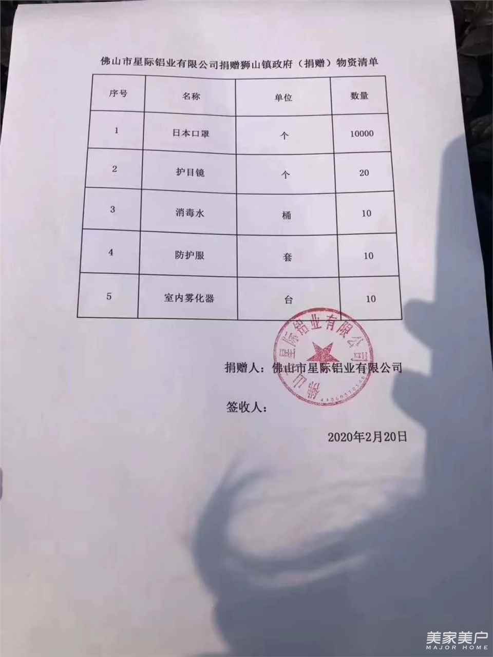 星派门窗一直努力践行企业社会责任,此次捐赠也是为抗击疫情尽一份心、出一份力,为战胜此次疫情尽一份绵薄之力,武汉加油!中国加油!