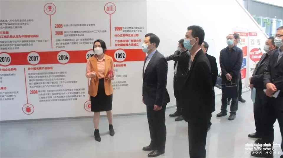 市调研组一行在伟业集团董事总经理李伟萍、副总经理冯扬明等众领导热情接待并陪同下深入了解我司在新型冠状肺炎疫情下复工复产情况,并深入生产车间、展厅了解企业详细情况。