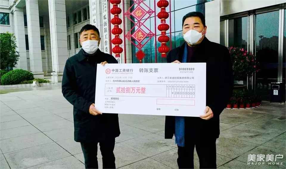 2月11日一早,浙江金迪控股集团有限公司董事长王永虎来到瓜沥镇人民政府,将28万元的现金支票送到了镇党委徐书记手里,专项用于抗击新冠肺炎疫情防控工作。