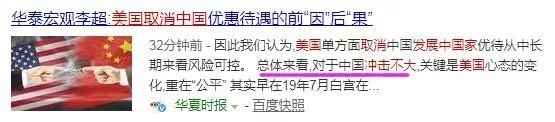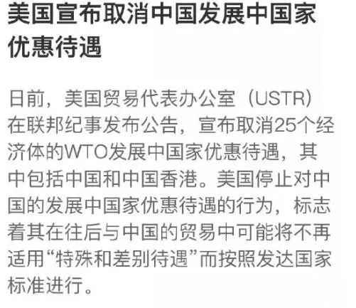 美国取消中国的发展中国家待遇,很多专业解读认为影响不大,无非是说,我们过去发展中国家,可允许的商品国家补贴比例从是2%,现在定成发达国家,给降至1%,对中国冲击不大,这种论断,大王实在难以苟同。
